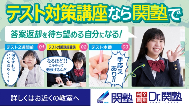 …関塾では学力の向上だけでなく、生徒一人ひとりの人格教育も重視した総合的な指導を行っています。「志望校に合格したい」「学校の成績を上げたい」という目標を達成するのはもちろんのこと、学習習慣や生活習慣など、より将来的な視野に立ち、明日を担う個性豊かな人間を育むことを関塾では目指しています。